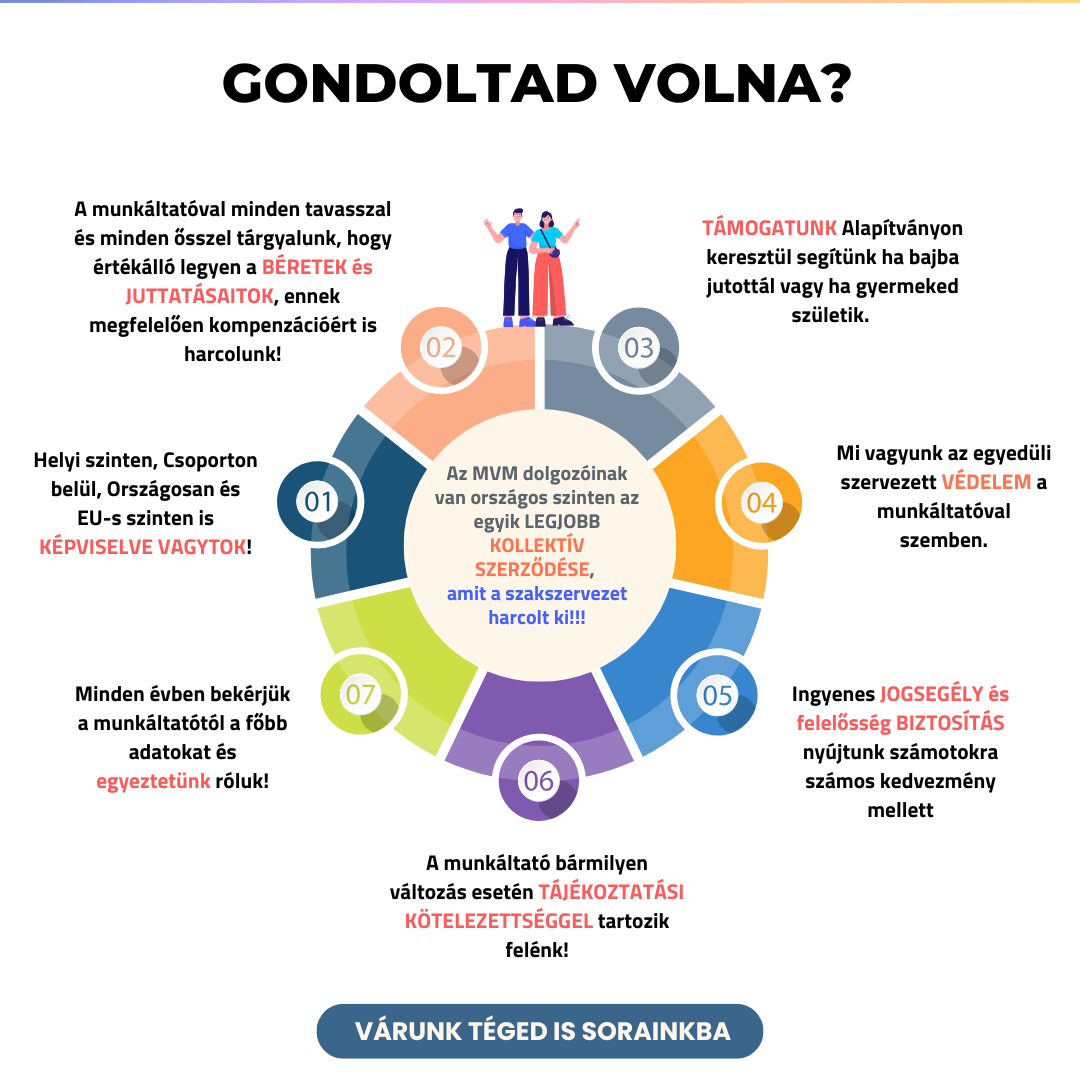 • A tagdíj a bruttó bér 0,7 %-a:  ennek 30%-át olyan szövetségeink kapják meg – az MVM TSZSZ, az EVDSZ és azon keresztül a LIGA -, akik kormányzati szinten és európai szinten is képviselnek titeket. A fennmaradó részből gazdálkodik az ENSZ az érdekképviselet során felmerülő költségek fedezésére!